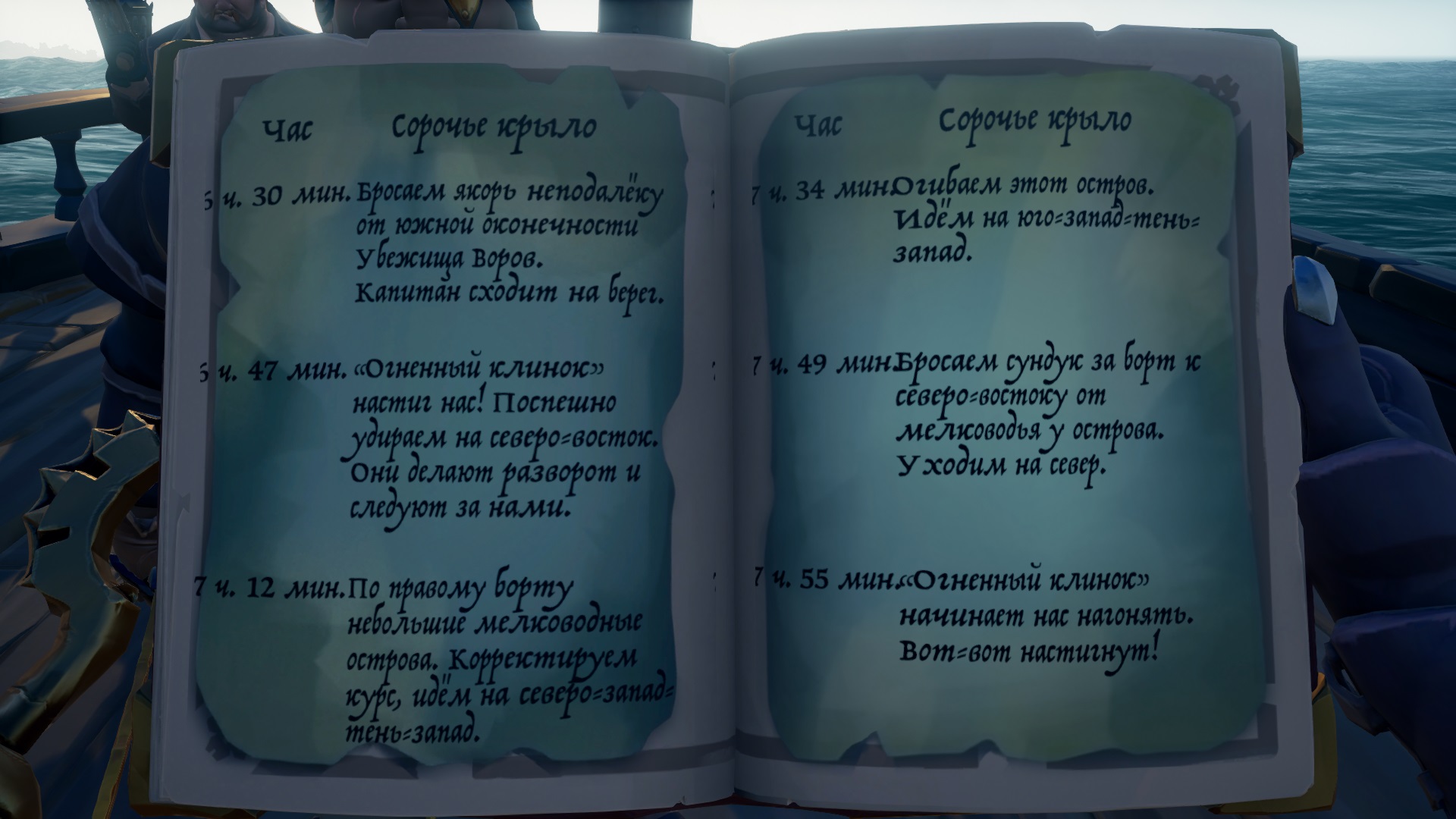 Из журнала мы узнаем, что во время погони капитан принял решение сбросить нужный нам сундук за борт.