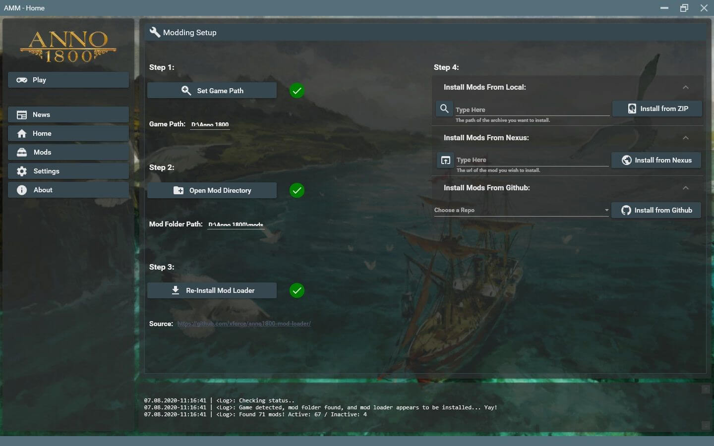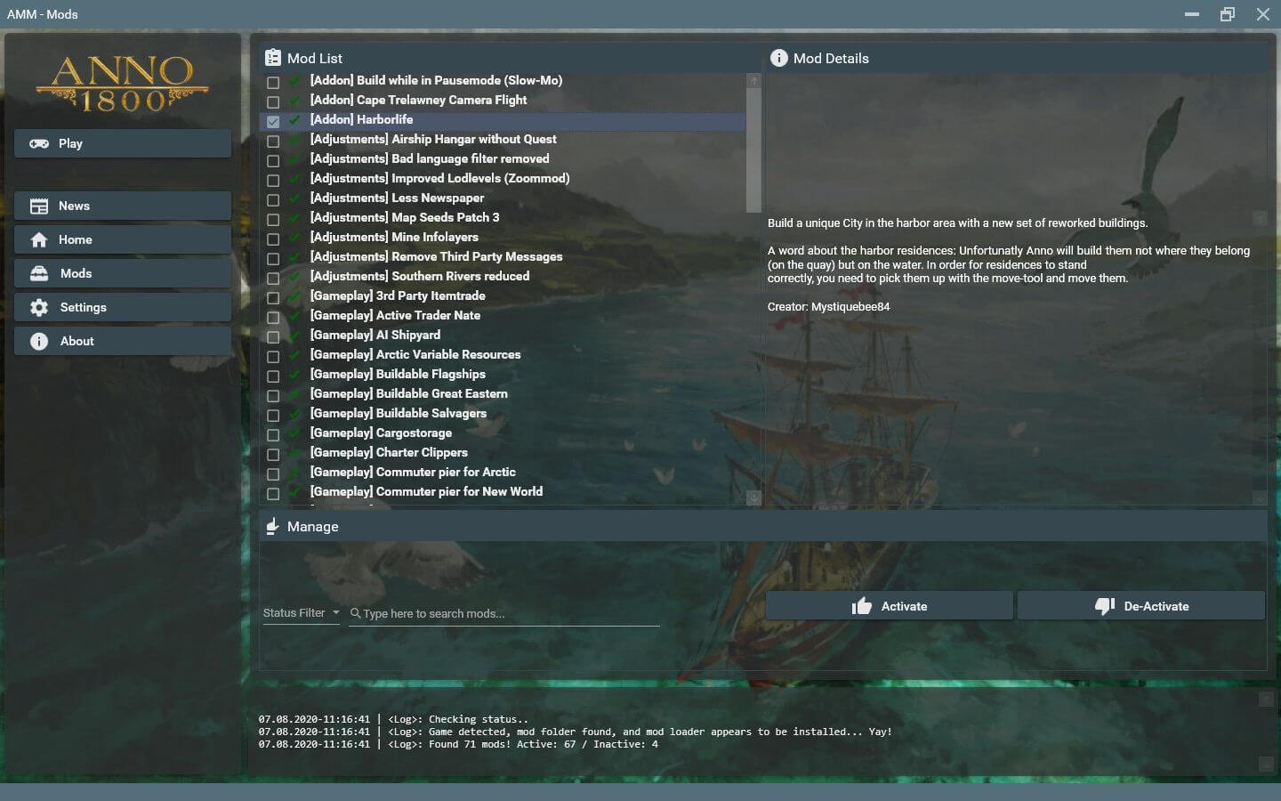 AMM является мод-менеджером для Anno 1800, теперь вы сможете с легкостью установить любую модификацию. Он использует процессы на месте и сделал популярным xforce для моддинга. Он не заменяет mod Loader xforce, а просто устанавливает его из своего репозитория github и управляет модами в каталоге модов через простой в использовании пользовательский интерфейс.