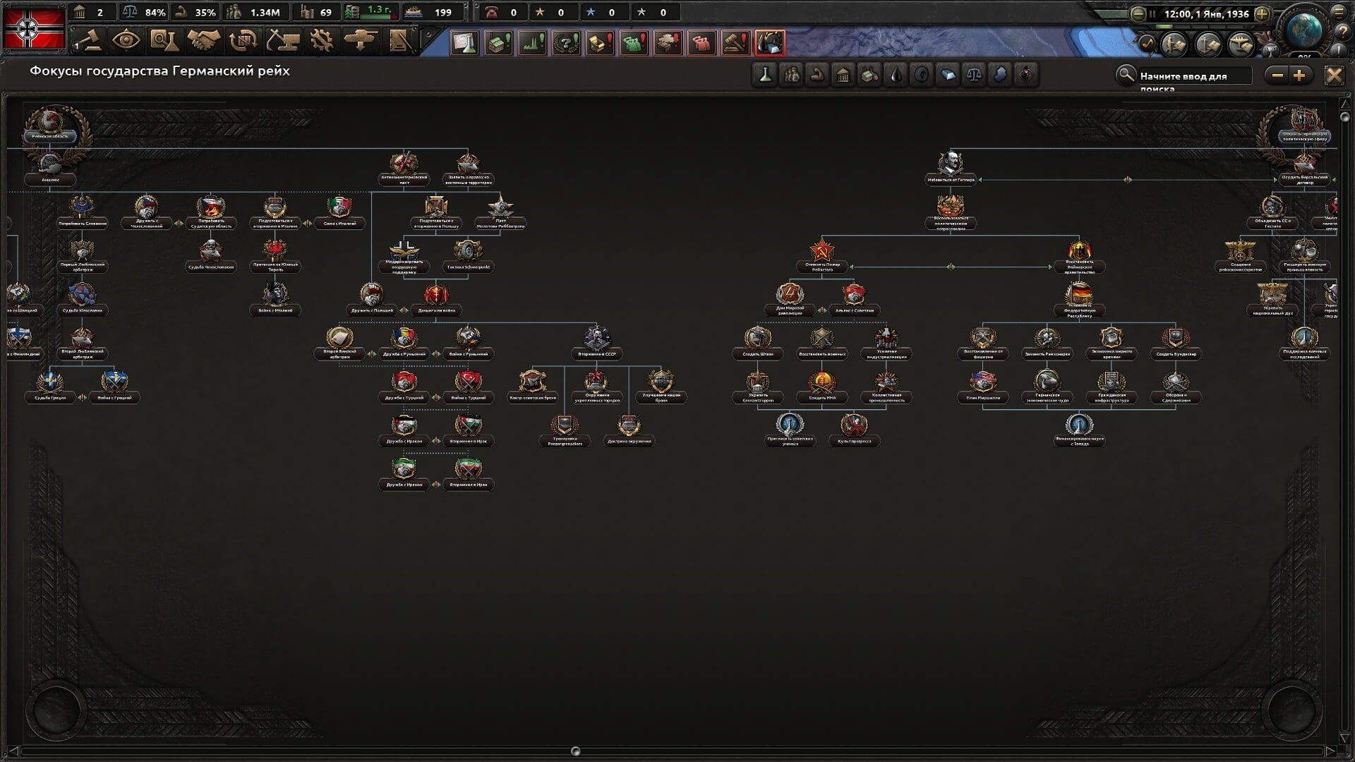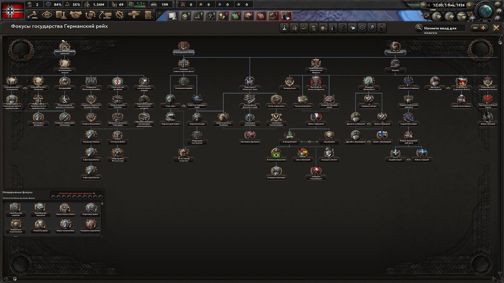 5.Была изменена ветка фокусов для стран без собственных фокусов.В конце этих веток страна выбирает между США и Германией.