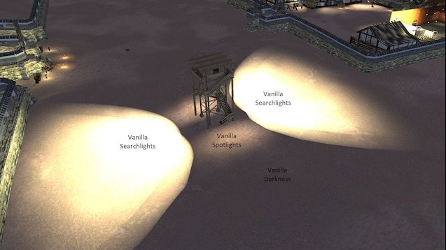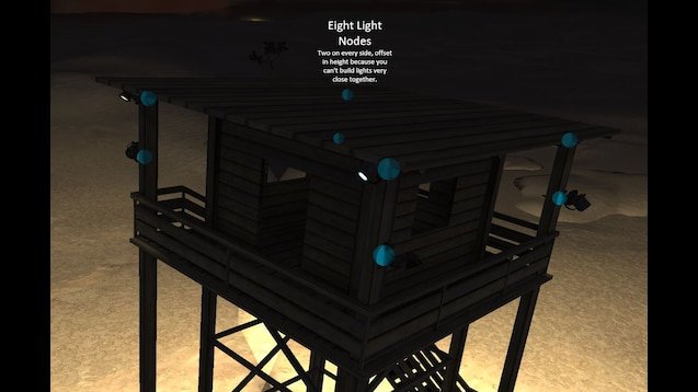 - Пользовательские огни - не встроенные в модель, а как новые огни, доступные для строительства. "Прожектор Сторожевой башни" и "Прожектор Сторожевой башни", в основном просто отшлифованные версии ванильных огней.