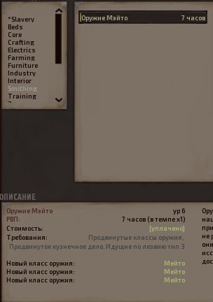 Для изучения вышеупомянутых классов оружия требуются предыдущие исследования (Продвинутые классы оружия и Продвинутое кузнечное дело). Странные уровни кузнечного дела являются результатом ограничений инструмента моддинга Кенши.В отличие от некоторых других похожих модов, у этого нет проблемы с тем, что оружие Мейто становится ржавым хламом при критическом шансе.