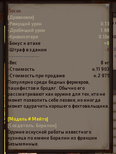 - Цена продажи созданного оружия повышена до уровня существующего.