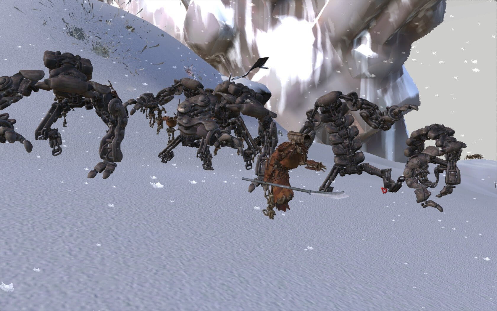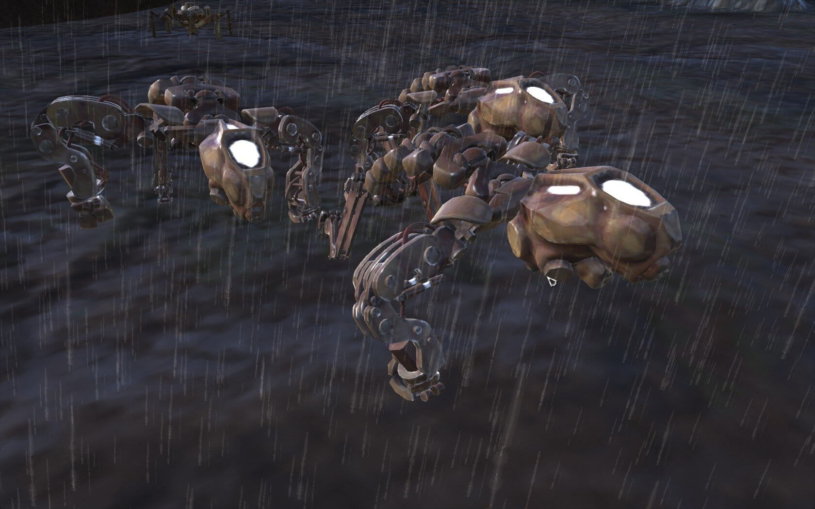 Кримпер: огромные неповоротливые скелеты, которые блуждают по пустынным и грязным руинам старых империй, очень похожие на железных пауков. Они жесткие, и лучше избегать их на раннем этапе. Они не слепы, как пауки, поэтому они будут охотиться за вами, как только увидят вас.