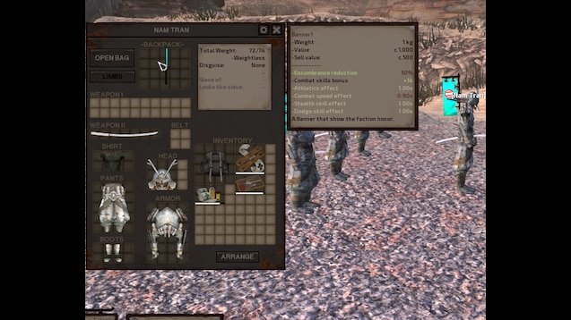 Мод добавляет в игру баннеры, которые можно носить на себе как рюкзак, а также которые дают дополнительные характеристики, в зависимости от баннера.