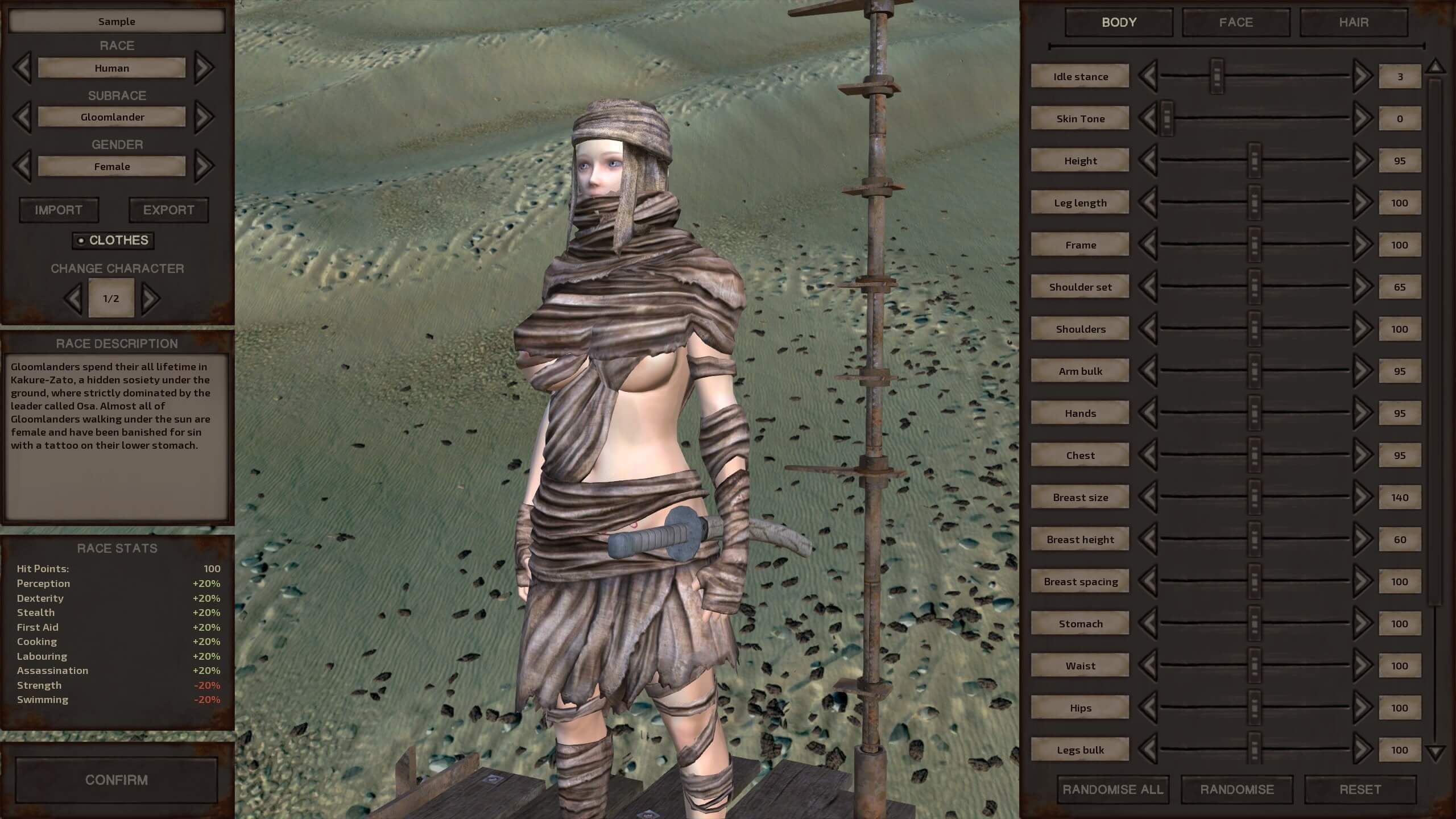 Этот мод добавляет новую расу - Хмуроземец в мир Kenshi. Почти все жители Хмурой страны живут под землей, а остальные, изгнанные под солнце - женщины-грешницы.