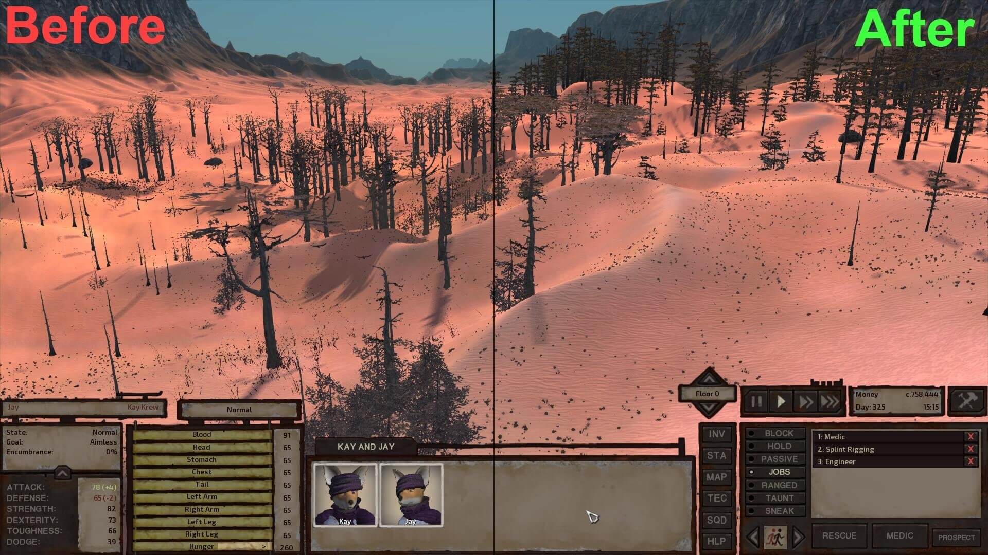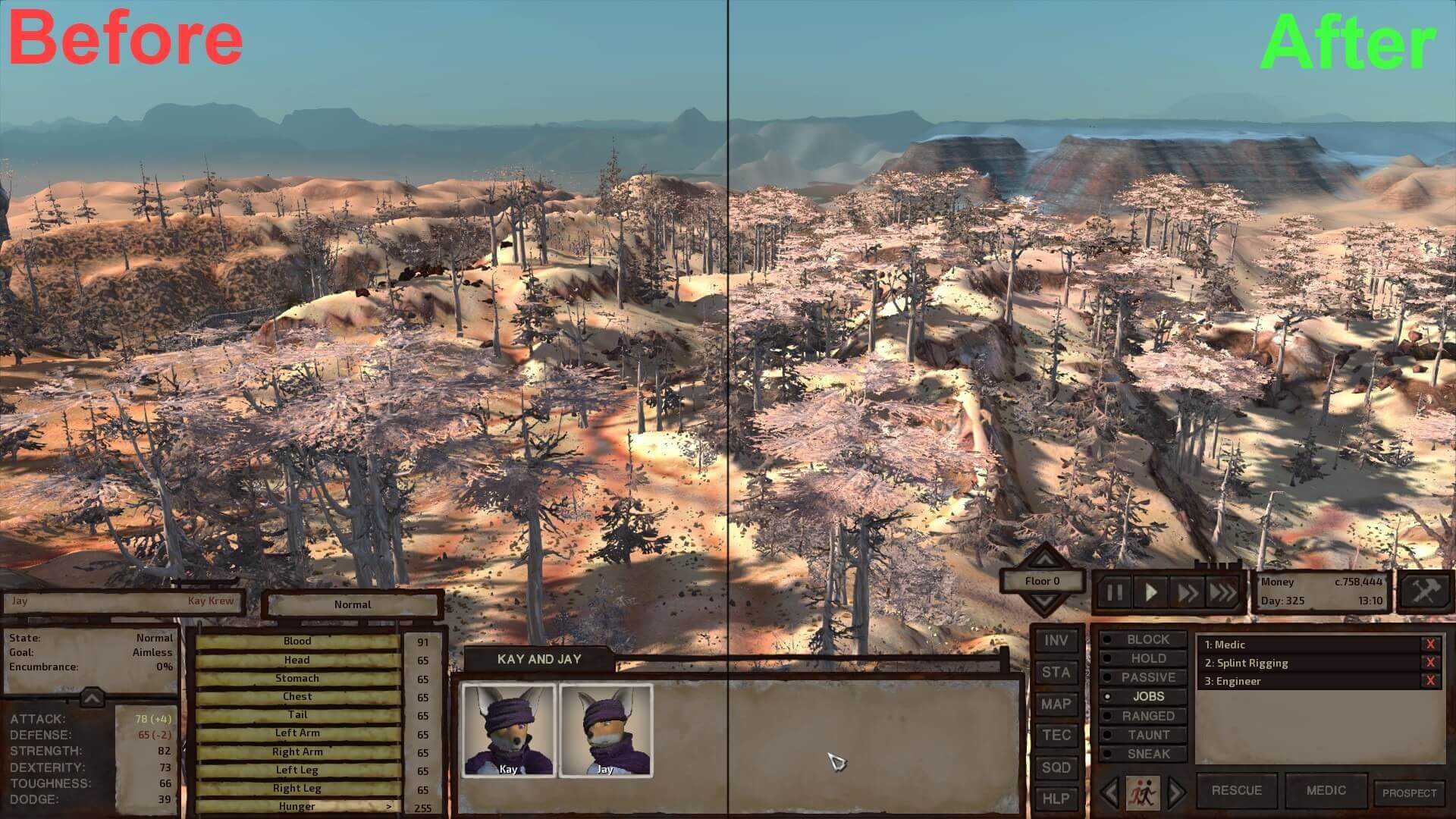 Этот мод изменяет то, как Kenshi рендерит отдаленную листву, позволяя лучше видеть ее, чтобы она не выглядела как шум.