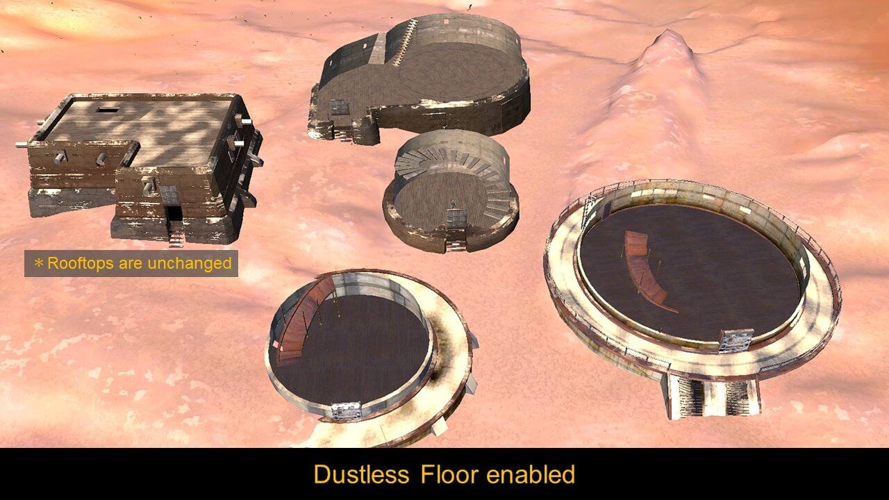 Мод заменяет пол в зданиях на чистый, без всякой пыли, песка и пепла. Только для ванильных зданий.