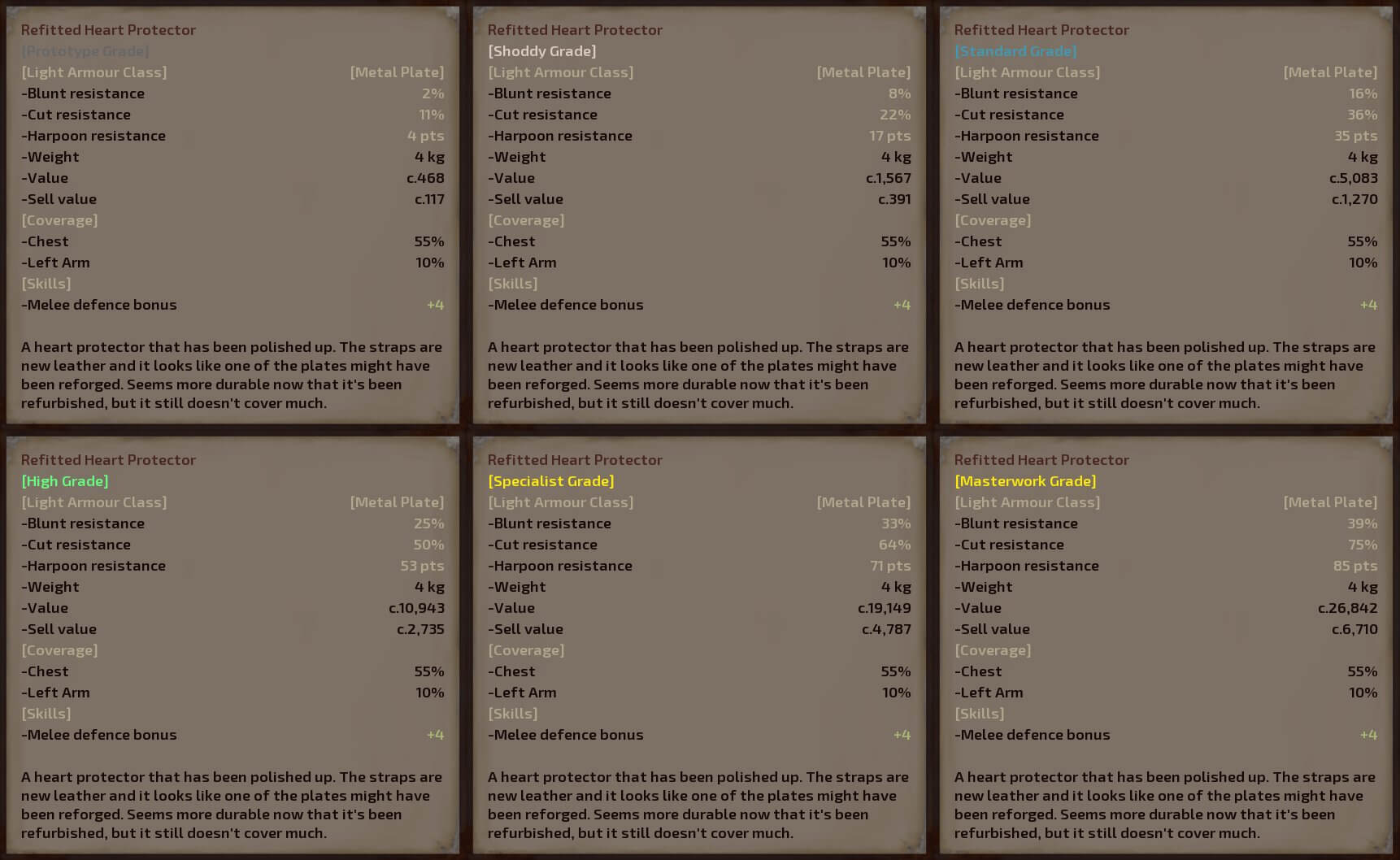 Любой NPC с шансом появиться в Rusty Heart Protector имеет половину этот шанс появиться с переоборудованной версией, за некоторыми исключениями, такими как бедняки, у которых не будет доступа к кузнецу.