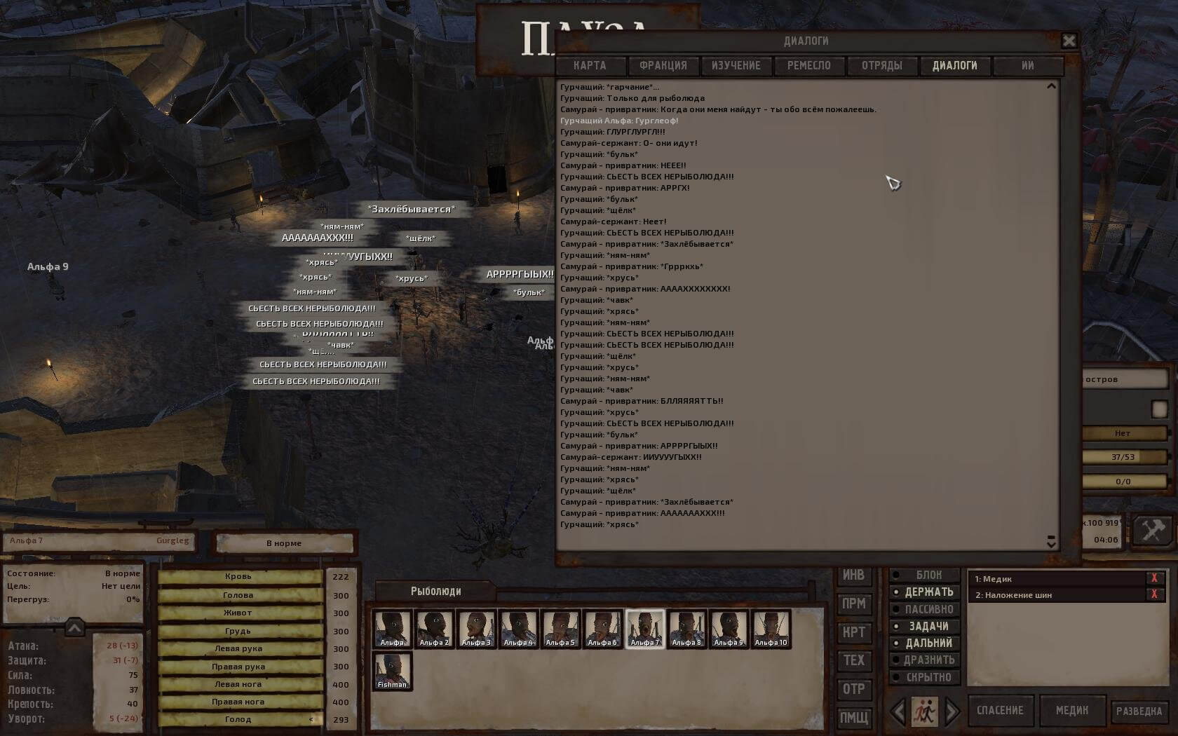 Рекрутить Гурчащих Рекрутов (fishman rekruit) и даже Альфа-рыболюдей можно в городе Рыбный Остров (но поочерёдно с таймингом и шансом в 30%). Немного обновлены диалоги рыболюдей.