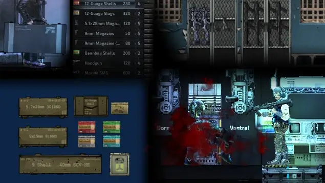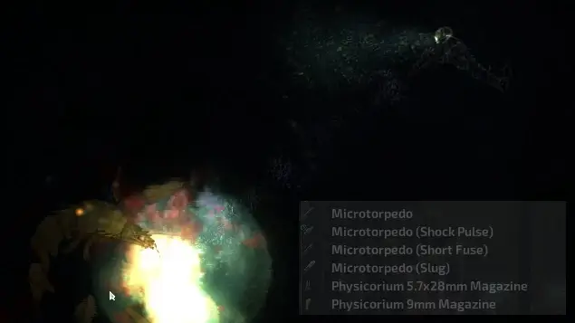9mm Magazine (High-capacity, Physicorium, Riot), 10mm-Auto Magazine (Physicorium, Riot), 5.7x28mm Magazine (Physicorium, Riot), 5.56x45mm Magazine (Physicorium, Riot), 5.56x45mm Drum (Physicorium) Shotgun Shells (12-Guage, Slug, Beanbag, Grenade, Physicorium Slug), Tazer Cartridge, Flare Shell, Microtorpedo (Slug, Short-fuse, Shock-pulse), Rocket (High-explosive, Short-fuse, Armor-piercing, Physicorium), 30mm-FC Clip, Rocket Harpoon, Thermite, Impact Mine, Smoke Grenade, Flashbang, Thermite Grenade, Satchel Charge, Dynamite