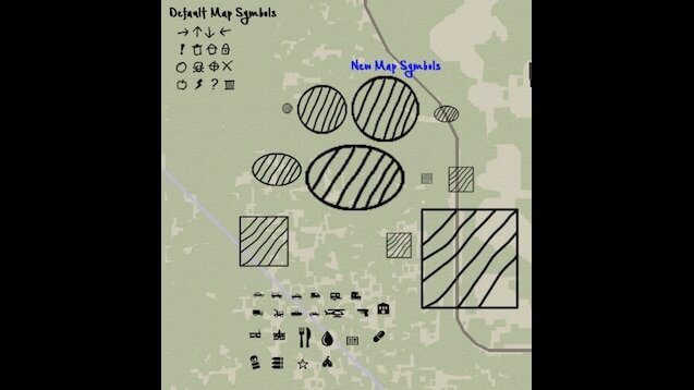 Нанесенные символы совместимы со всеми цветами пишущих предметов в том числе с мелками из мода Extra Map Symbols UI и с 4-х цветной рукой.