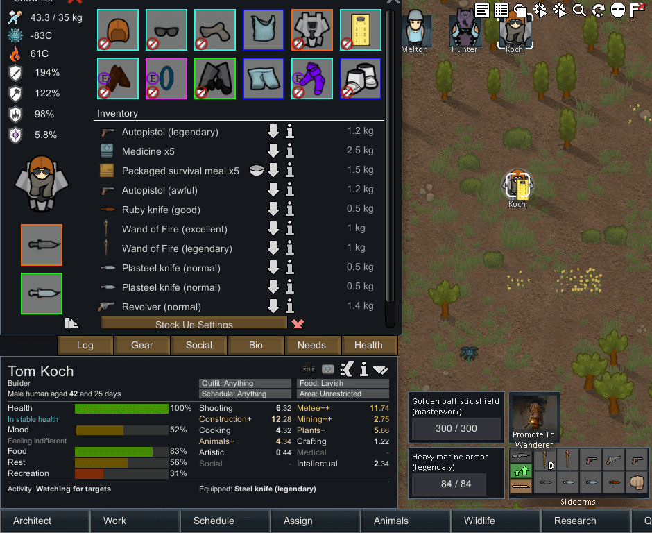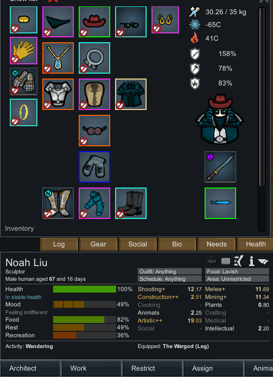 Мод RPG Style Inventory для Rimworld — заменяет пользовательский интерфейс вкладки персонажа с оружием и одеждой на вкладку в стиле RPG. Вкладка отображает основное оружие, одежду и баффы / дебаффы от качества и происхождения одежды (с трупа).
