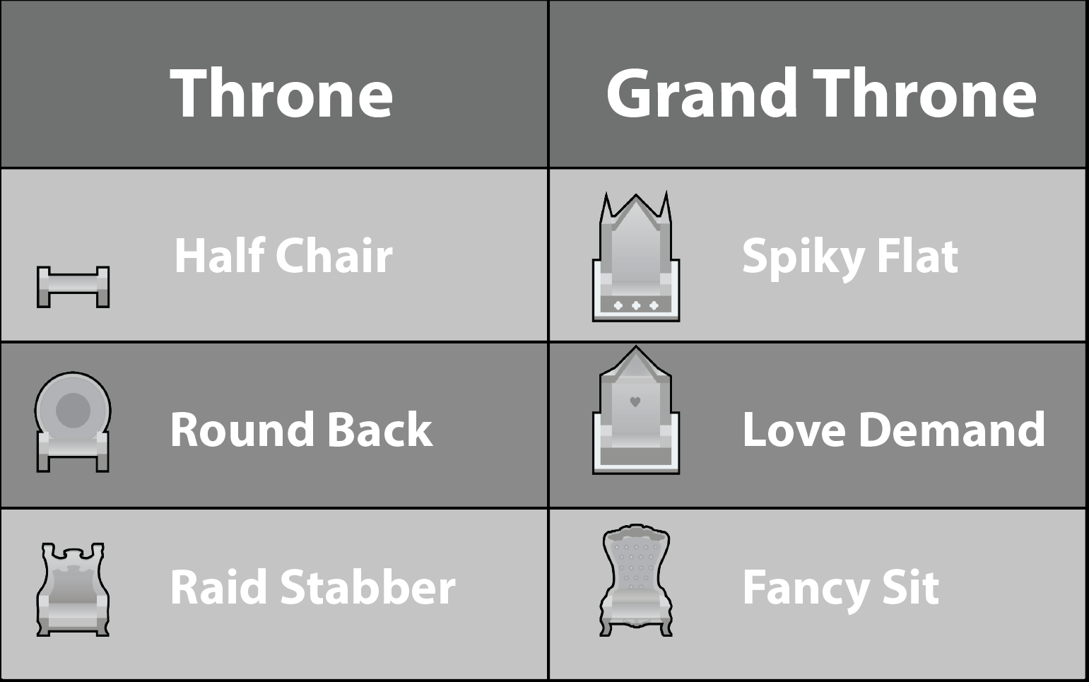 Мод добавляет 3 новых трона и 3 великих трона. Они явно будут лучше чем 1 ванильный трон и 1 роскошный.