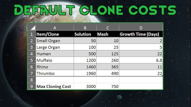 Что нужно чтобы создать клона? Хмм, нужно иметь его ген, Protein Mash в количестве 125 шт(можно изменить в настройках мода поменяв множитель ресурсов. Тогда кол-во измениться), Nutrient Solution в количестве 500 шт.