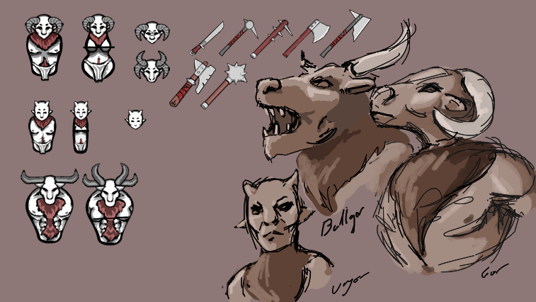 -Буллгор: Большие и смертоносные горы, у них ограниченный выбор одежды, но они от природы выносливы. Они, как правило, прожорливы и предпочитают сырое мясо. Не могу исследовать.
