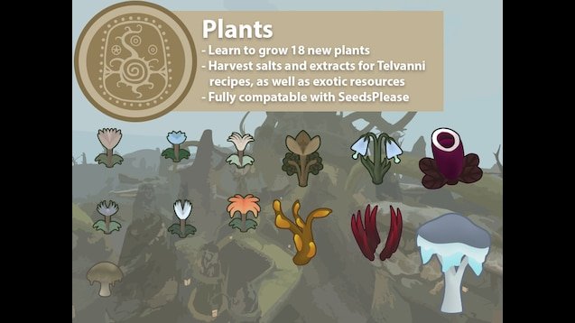 Великий дом Телванни создал несколько новых видов растений, которые теперь можно исследовать и выращивать. Эти растения позволяют выращивать экзотические ресурсы, многие из которых пригодятся для крафта телваннийских предметов и снаряжения. Конечно, телванни не облегчали выращивание этих растений. Каждый ярус растений будет требовать все более квалифицированных производителей.