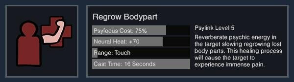 - regrow body parts - медленно восстанавливает потерянные части тела, вызывая при этом огромную боль (подобно люциферию, части тела просто появятся через некоторое время)