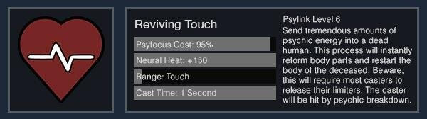 - reviving touch - оживить умершего колониста. Эта пси способность вызывает огромное количество нейро перегрева и пси срыв.