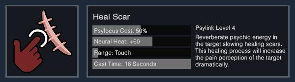 - remove scar - медленно заживляет шрамы, одновременно резко усиливая боль