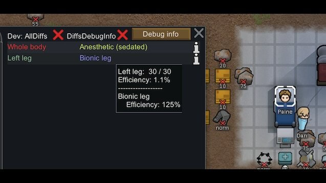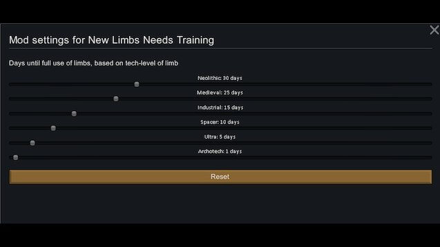 Время восстановления зависит от технического уровня конечности и может быть изменено в настройках мода. Влияет только на те части тела, которые определяются как находящиеся снаружи тела, импланты не будут затронуты.