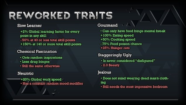 Мод добавляет новые черты, перебалансирует ванильные черты и сдвигает скучные черты.