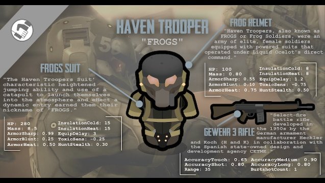 Этот мод добавляет костюм FROG и шлем из Metal Gear Solid 4.