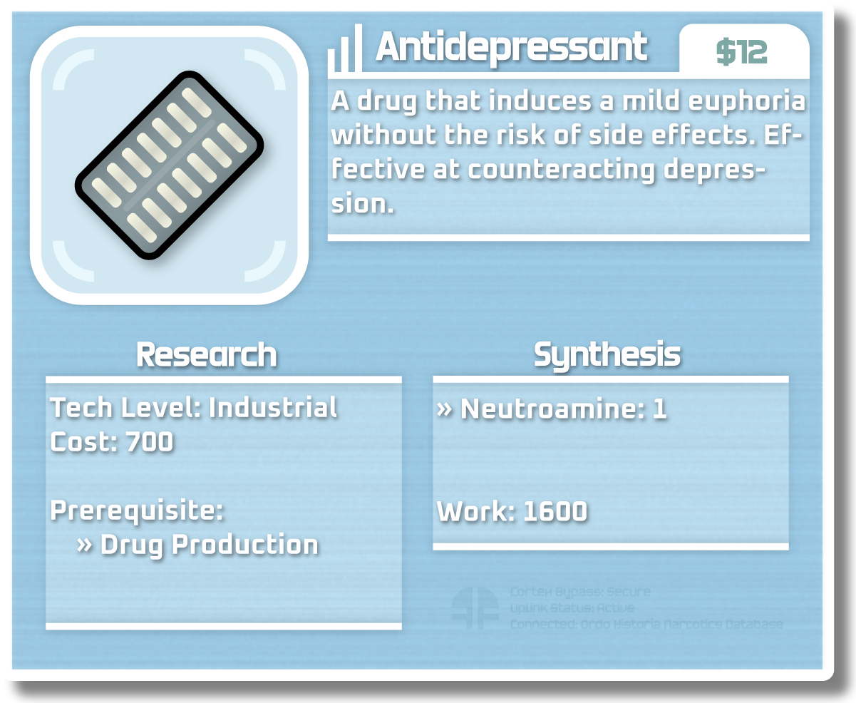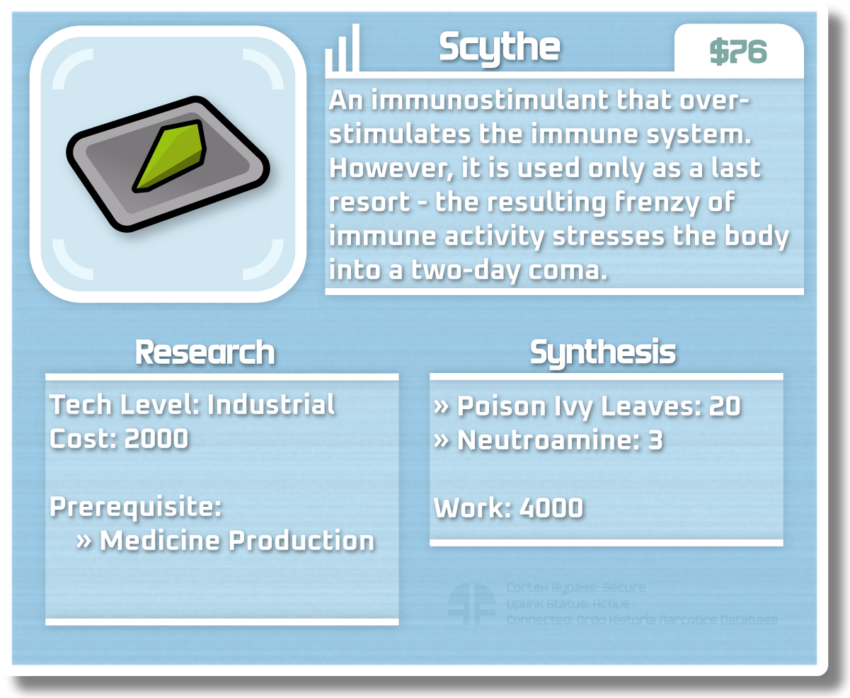 Вам мало препаратов из оригинальной игры? Не знаете, почему каждый препарат - альтернатива травке? Устали иметь дело с побочными эффектами в 5500 году, хотя вы этого и не делали в 2000 году? У нас есть для вас решение.