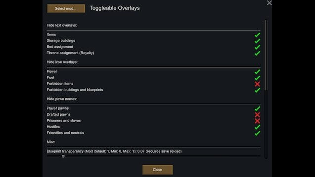 Мод "Toggleable Overlays" для Rimworld позволяет наложениям отображаться только при наведении курсора мыши . Помимо очистки пользовательского интерфейса, есть также повышение производительности, когда движку не нужно вычислять и отображать весь этот мусор.