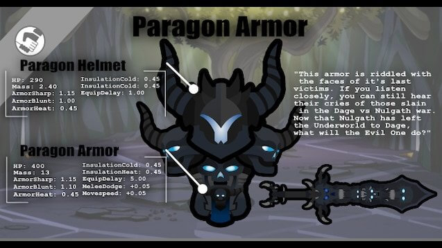 Мод добавляет 2 крутых сета брони Paragon Plate и Paragon of Light Armor из AdventureQuest Worlds.
