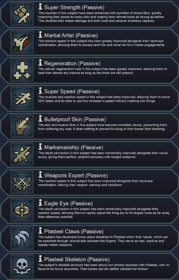 Откройте для себя древние технологии, которые давным-давно использовались на войне, о которой почти никто не помнит. Соберите остатки древних технологий, чтобы создать мастерскую, в которой ваши пешки будут вводить таинственную разновидность супер-нанитов, наделяя их сверхчеловеческими способностями с риском серьезного повреждения мозга. Исследуйте новые древние локации, в том числе недавно открытые древние хранилища, потенциально охраняемые суперсолдатами, которые считают, что война все еще продолжается, и каждый день ждут новых команд из штаб-квартиры, которой больше не существует.