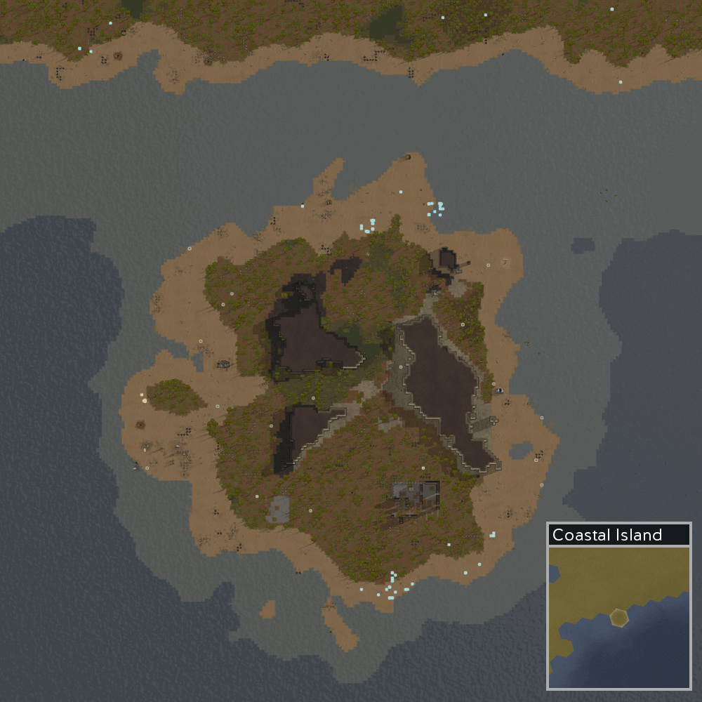 Все формы рельефа (должны) всегда оставлять хотя бы одну часть края карты проходимой, что позволяет событиям и рейдам происходить нормально. Для островов, в частности, по крайней мере одна сторона всегда будет иметь мелководье, чтобы можно было входить и выходить с карты.