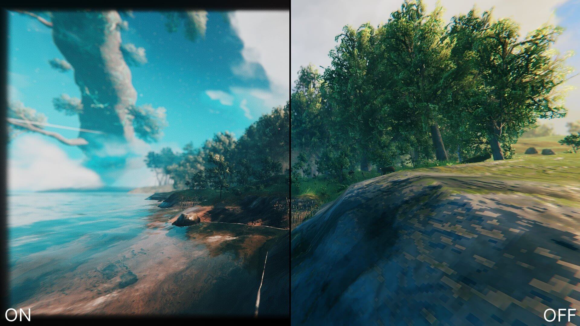 - Решейд для игры Valheim, яркие цвета, более темные тени (необязательно), резкие текстуры \\ окружение и тонкая кинематографическая виньетка.
