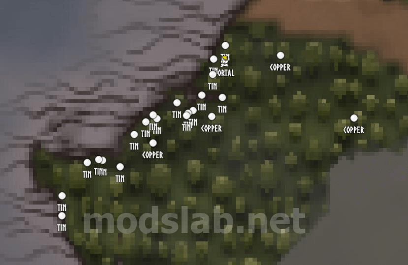 Модификация автоматически отмечает рудные жилы на вашей карте, когда вы находите их.